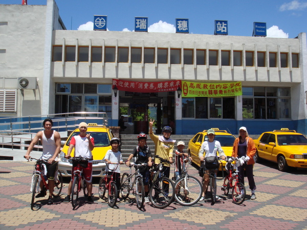 (大家排在一起,靠近一點) 我們在烈日底下,車站門口留下了第一張體驗之旅剪影。